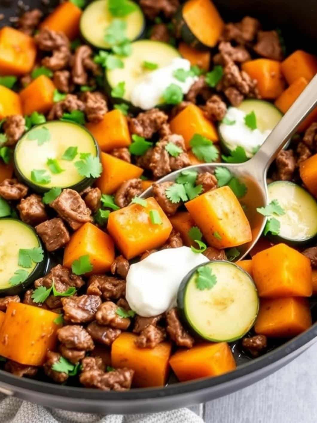 Easy Beef Zucchini Sweet Potato Skillet